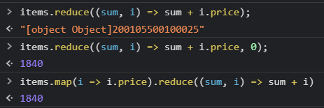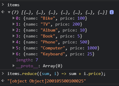 따라서 객체의 배열 items를 사용하고 있는 나의 경우, sum에 객체가 초기값이 주입되어