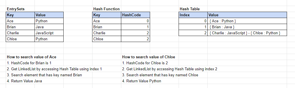 HashMap의 동작 원리에 대해 이해한 내용을 토대로 스프레드시트로 내용을 정리해봤습니다.