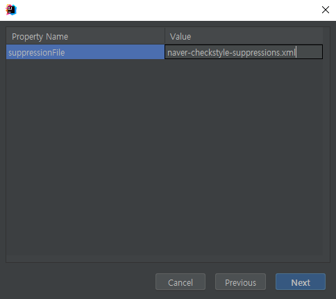 naver-checkstyle-suppressions.xml 파일에 아래 내용을 기입합니다.