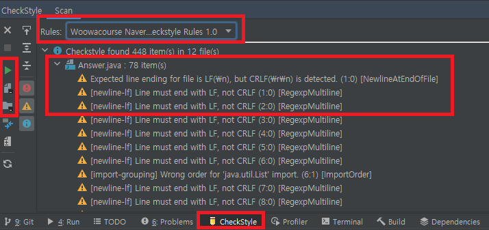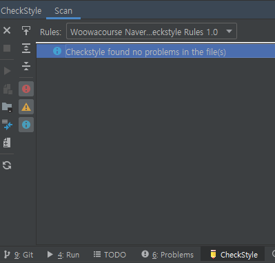 설정 완료 후, 하단에서 CheckStyle 탭을