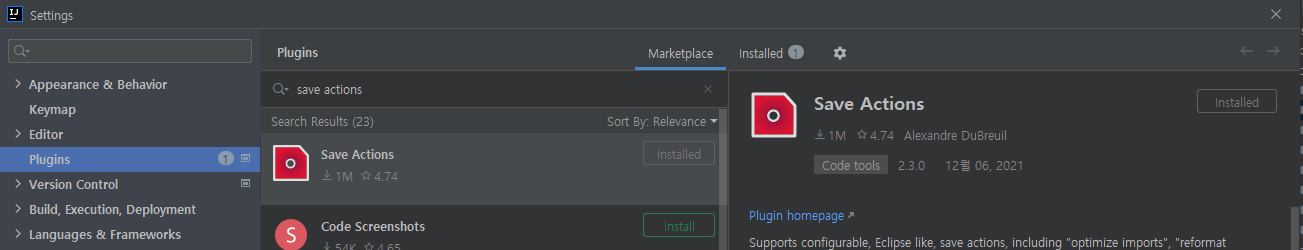 1) Save Actions 플러그인을 설치하고 인텔리제이를 재시작합니다.
