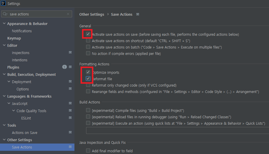 3) save actions 를 이용해 전체 프로젝트에 리포맷팅 및 세이브 액션 활성화