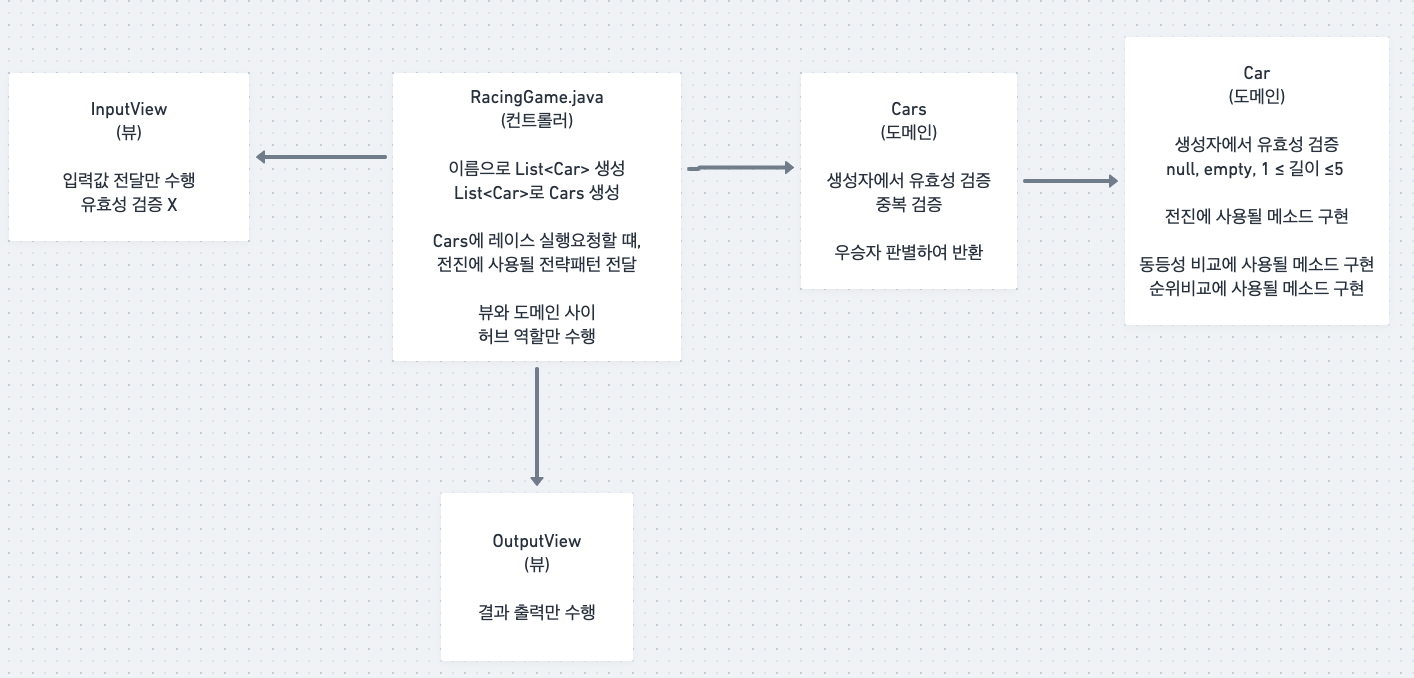 (위 그림은 레벨1 자동차미션 완료 후 팀 회고에서 사용한 나의 설계이다. 중간 매개로 사용했다.)