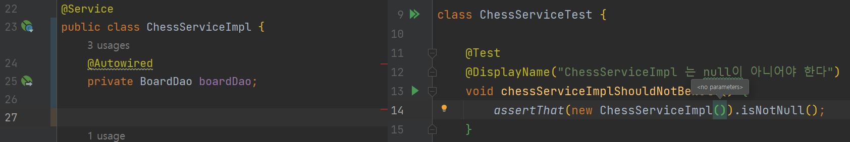그 결과 ChessServiceImpl 을 new 생성자로 생성할 때,