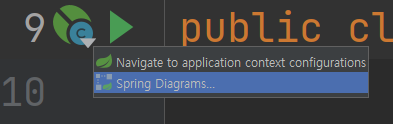 SpringBootApplication 애너테이션이 선언된 곳의 아이콘 중 하나를 눌러 진입 가능합니다.