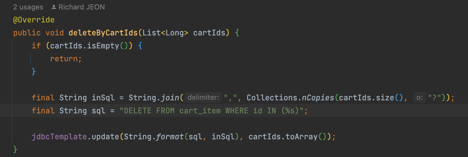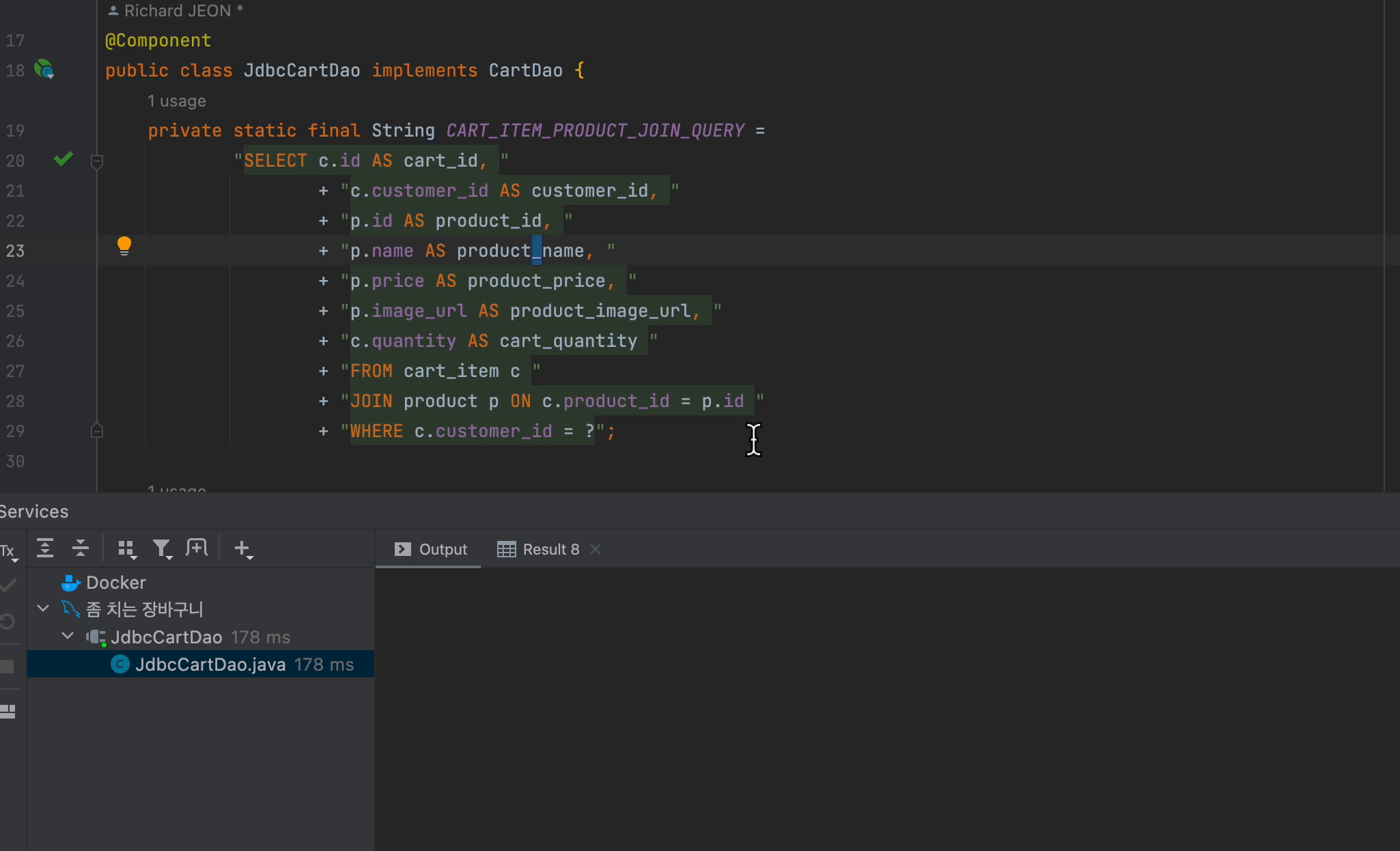2. Cmd + Enter (또는 Ctrl + Enter) 를 통해 Java 코드에 입력된 쿼리를 즉시 실행할 수 있다.