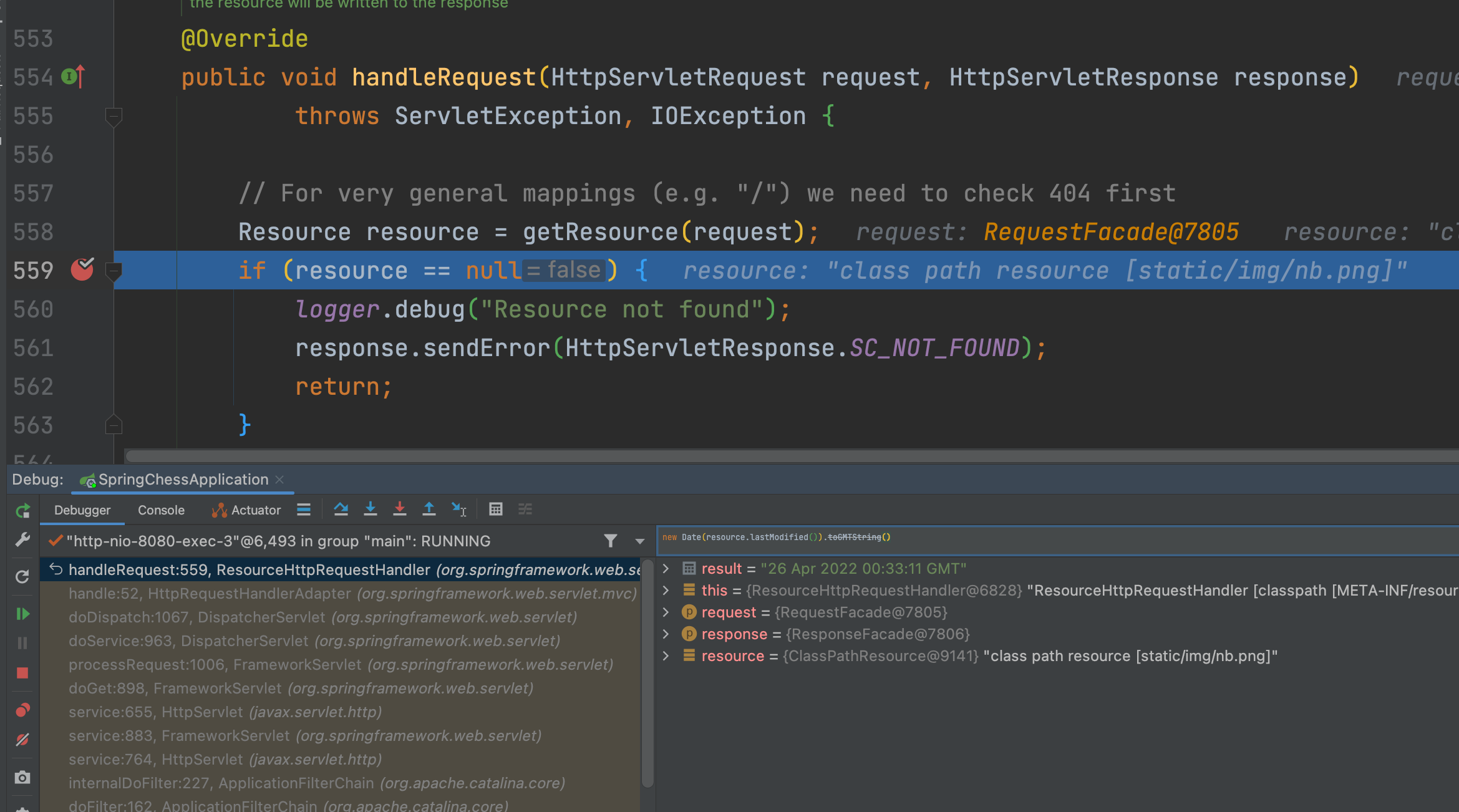정적 자원에 대한 요청이 왔을 때 처리되는 과정을 확인할 수 있습니다.