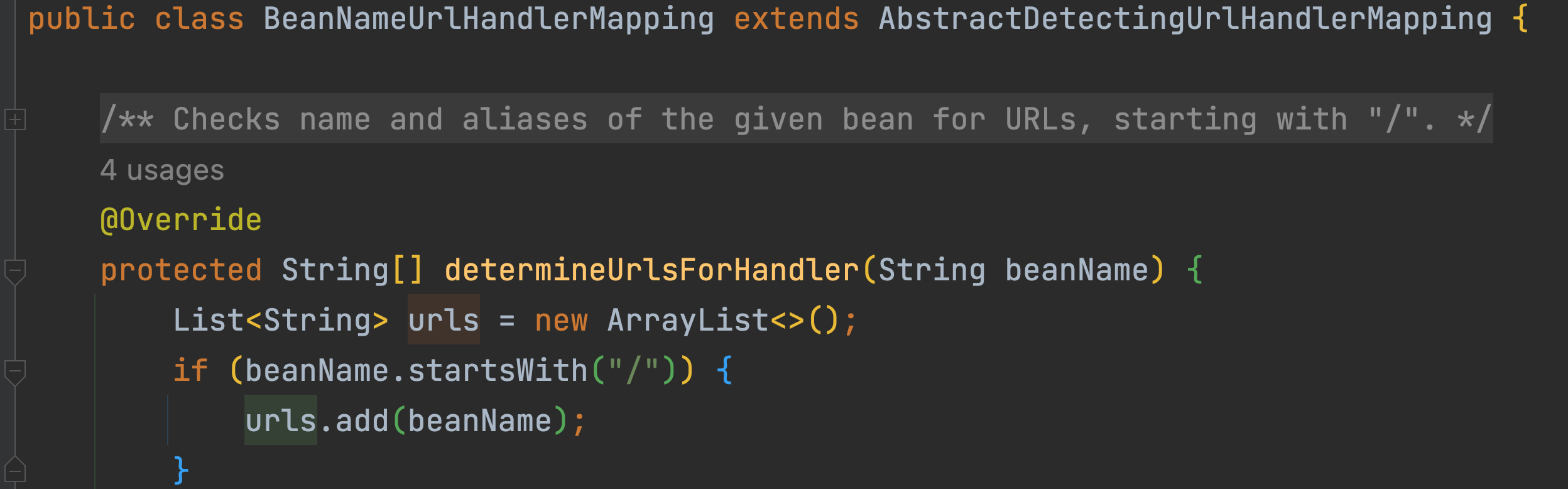 BeanNameHandlerMapping은 AbstractDetectingUrlHandlerMapping 을 상속하는데요,