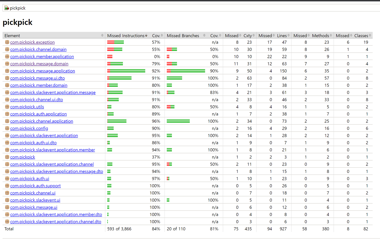 Jacoco를 이용해 손 쉽게 코드 커버리지를 분석하고, 결과를 공유할 수 있게 됐네요.