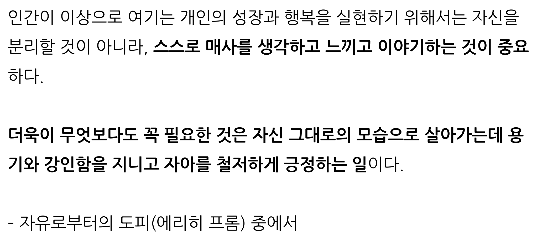 자유, 고독, 책임, 이런 이야기가 전혀 들리지 않았다.