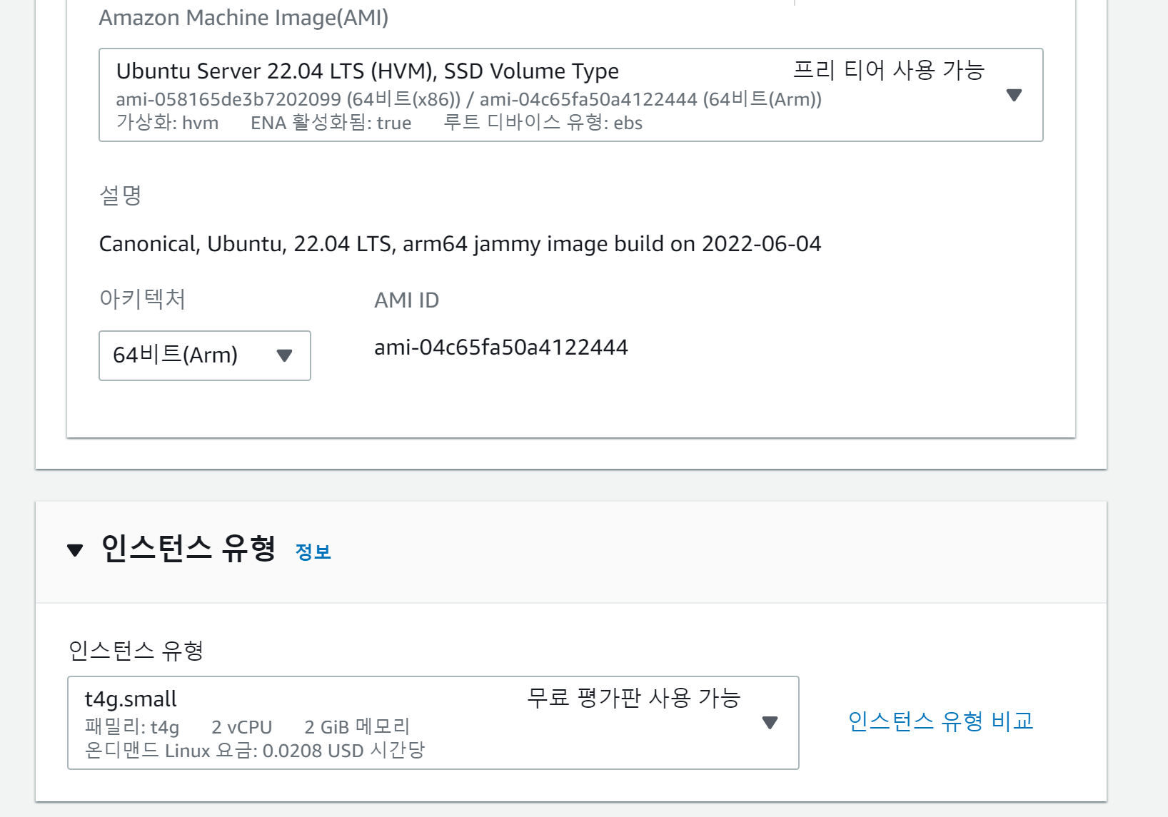 t4g.small 은 메모리가 2GB 네요! 항상 t2g.micro만 사용했었는데