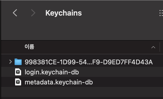 - finder 실행 -> cmd + shift + g -> ~/Library/Keychains/ 입력 후 엔터 -> 99831 폴더 삭제 후 재부팅 (폴더 명은 다를 수 있음)