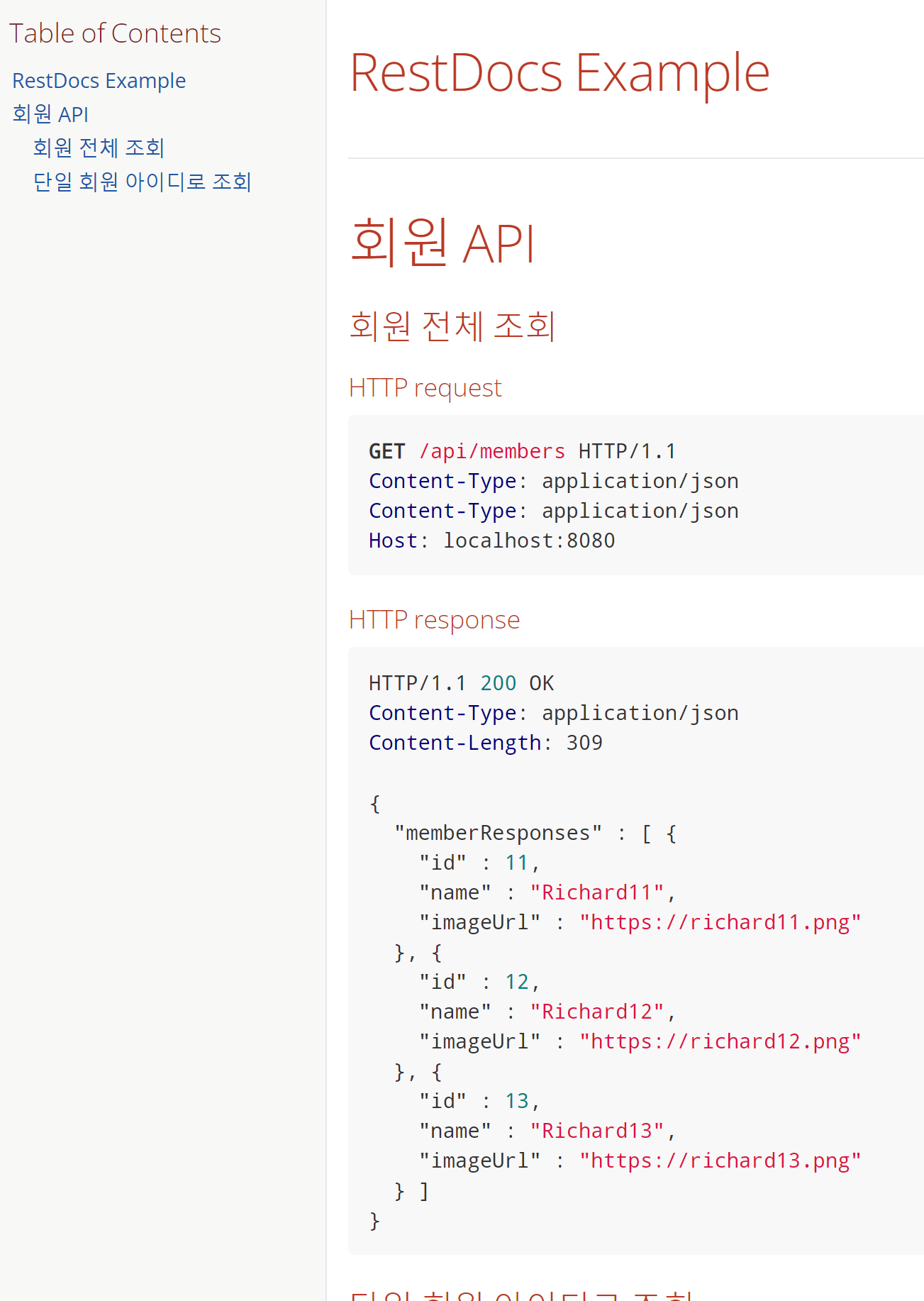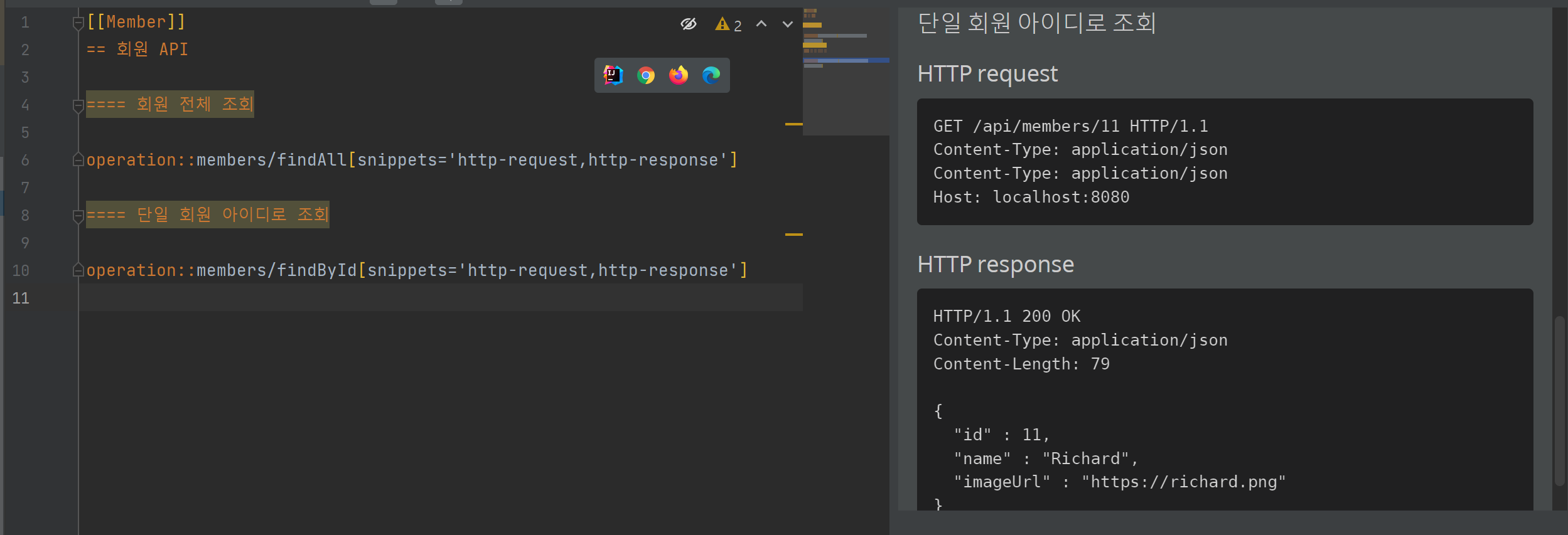 이렇게 만들어진 문서 조각은 회원 관련 API를 담당하는 문서조각이 될 것입니다.