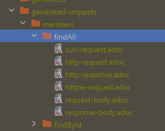 members/findAll 경로 아래에 있는 스니펫 중, http-request.adoc, http-response.adoc만 import하는 겁니다.