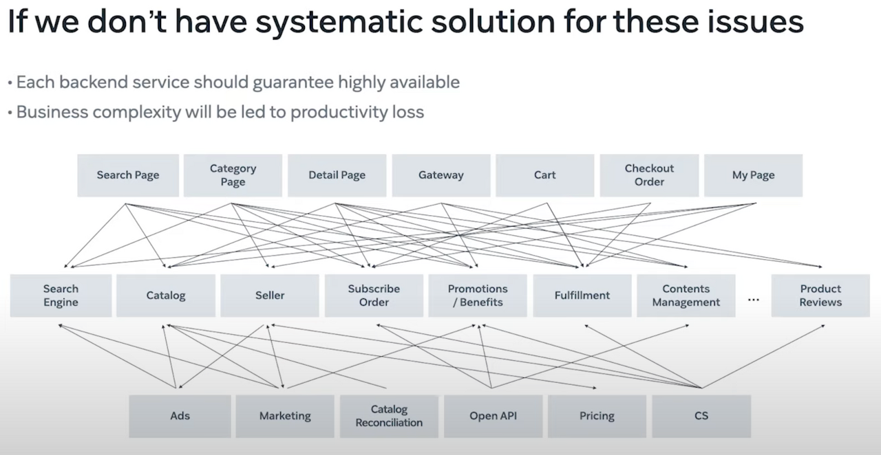 이렇게 구성하면 쿠팡 내 모든 페이지들은 커먼 서빙 레이어에 요청하여