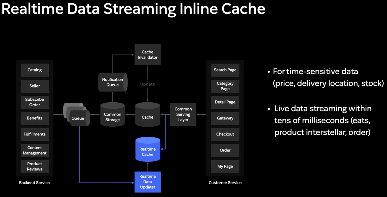 가격, 배송정보와 같이 실시간성 보장이 필요한 데이터들을 윙한 Realtime Cache를 추가로 구축했습니다.