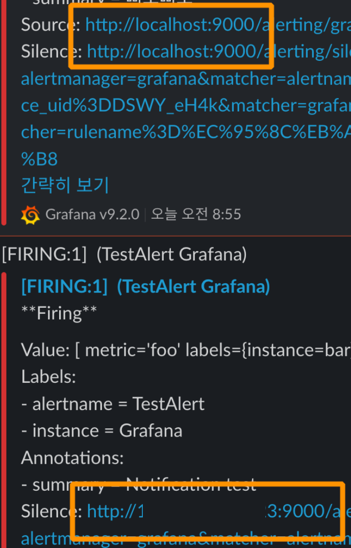 Contact points 에 진입하여 Webhook URL만 입력해두면 알림을 전송할 곳에 대한 설정은 완료입니다.