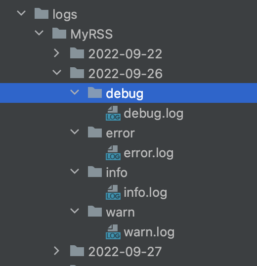 날짜별로, 레벨 별로도 분리되어 있고, 개발 운영 환경별로도 로그가 분리되어 있어