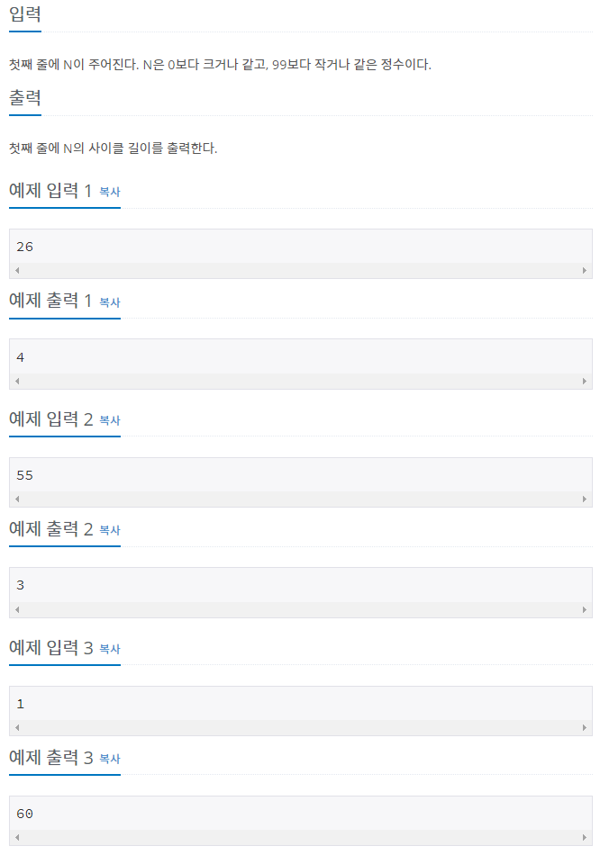 0보다 크거나 같고, 99보다 작거나 같은 정수가 주어질 때 다음과 같은 연산을 할 수 있다. 먼저 주어진 수가 10보다 작다면 앞에 0을 붙여 두 자리 수로 만들고, 각 자리의 숫자를 더한다. 그 다음,