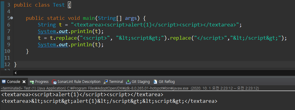 아주 초보적인 수준의 XSS공격과 대응이었다.