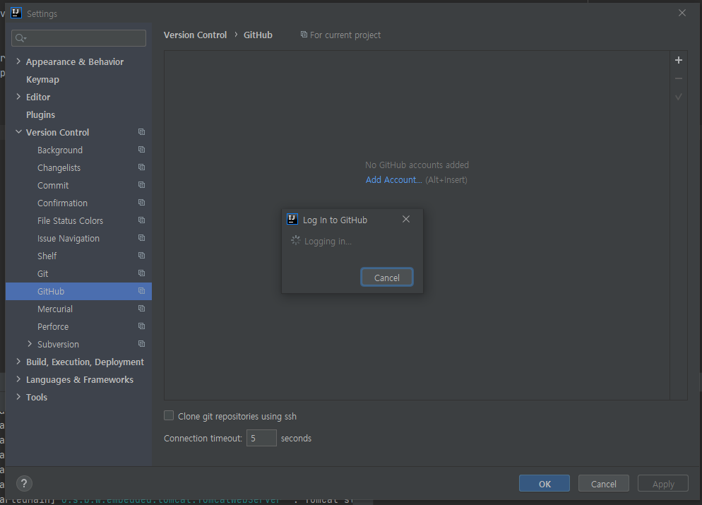IntelliJ + Github 연동을 위한 Github 계정 추가