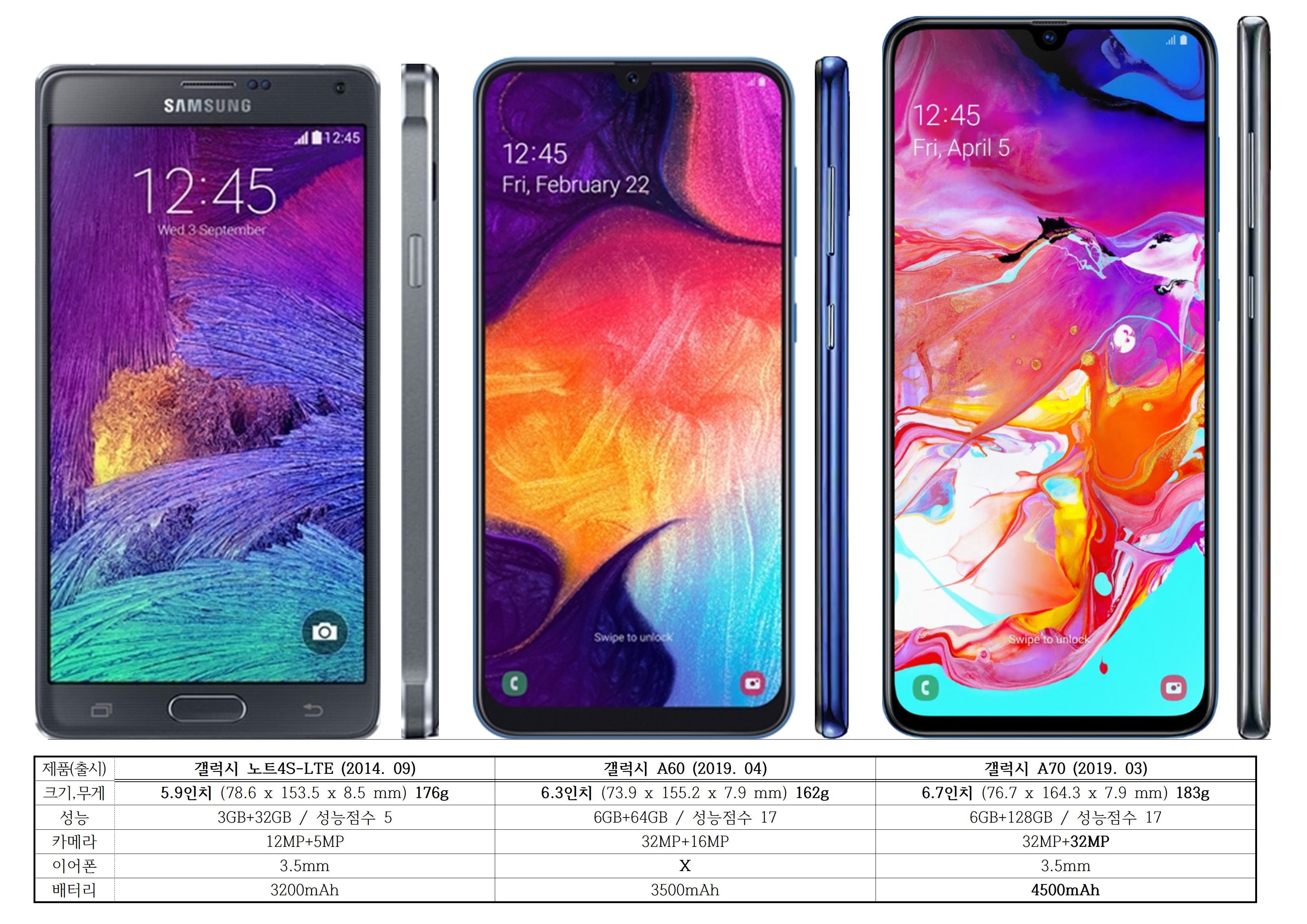 나는 베젤도 적고 두께도 얇고 무게도 적당하고 배터리도 많은 A70으로 무조건 갈 생각이었으나