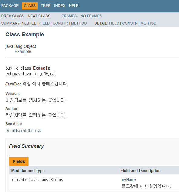 위와 같은 형태의 html 문서를 JavaDoc이라고 한다.